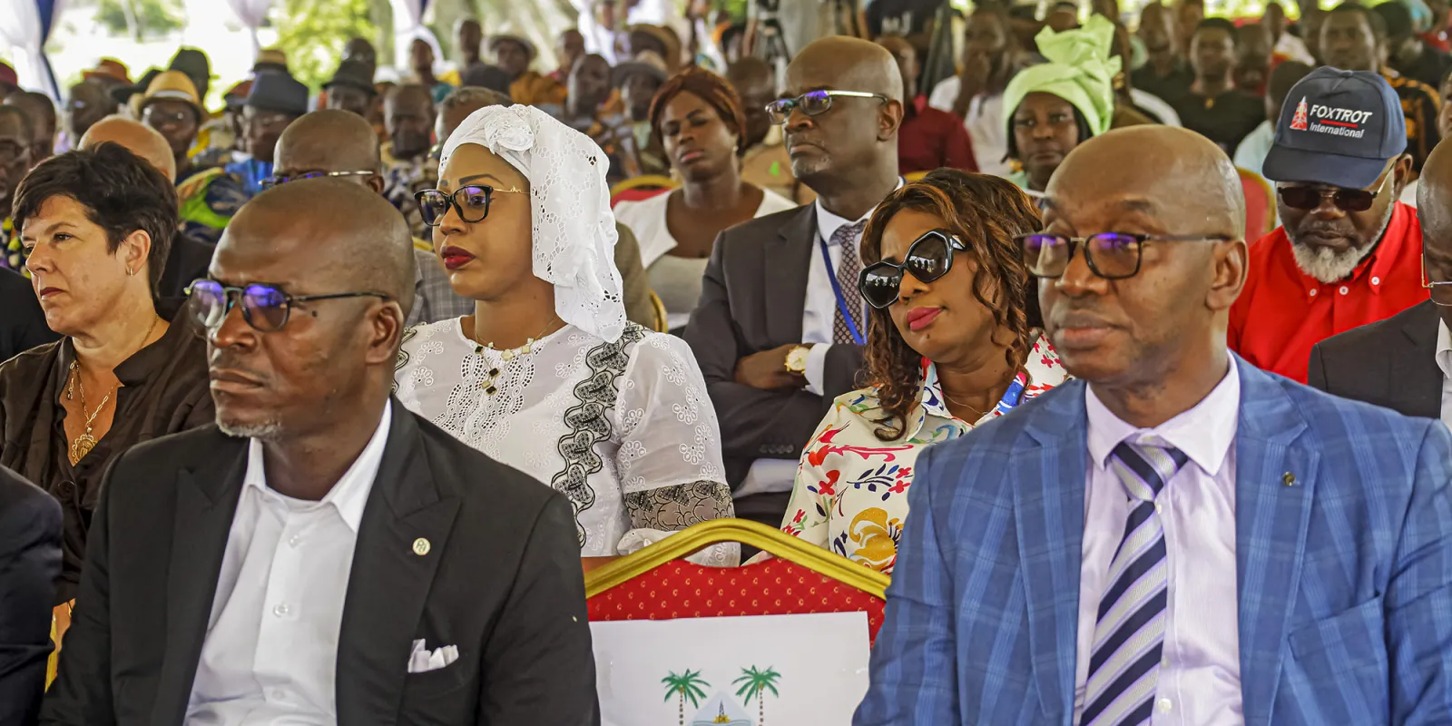 Après une série d’allocutions des officiels présents, Monsieur Jean-Michel BONNET, Directeur Général de FOXTROT, a procédé à la livraison officielle des 31 bâtisses : une clé symbolique a été remise au Président par intérim du CPG, Monsieur Francis BOMBRO et au représentant des Chefs des villages.