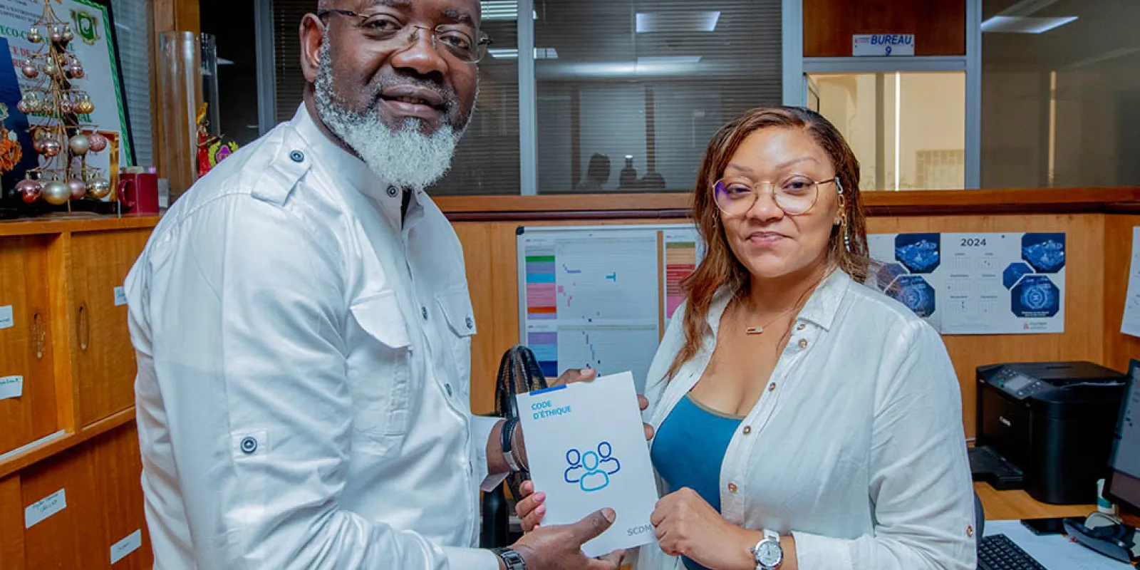 Sensibilisation sur le code éthique du groupe : remise symbolique du code éthique aux personnes et entités clé de Foxtrot & SECI